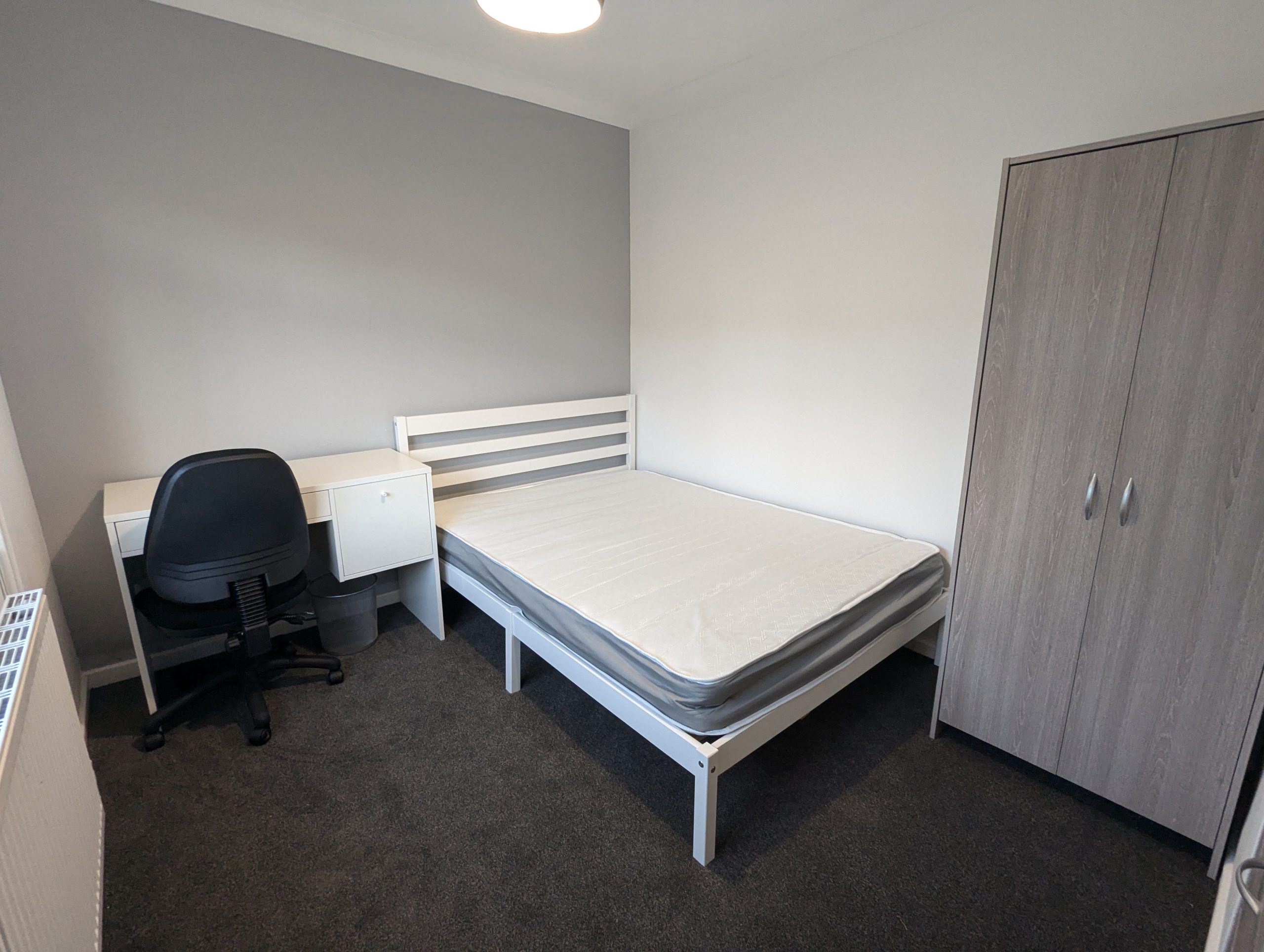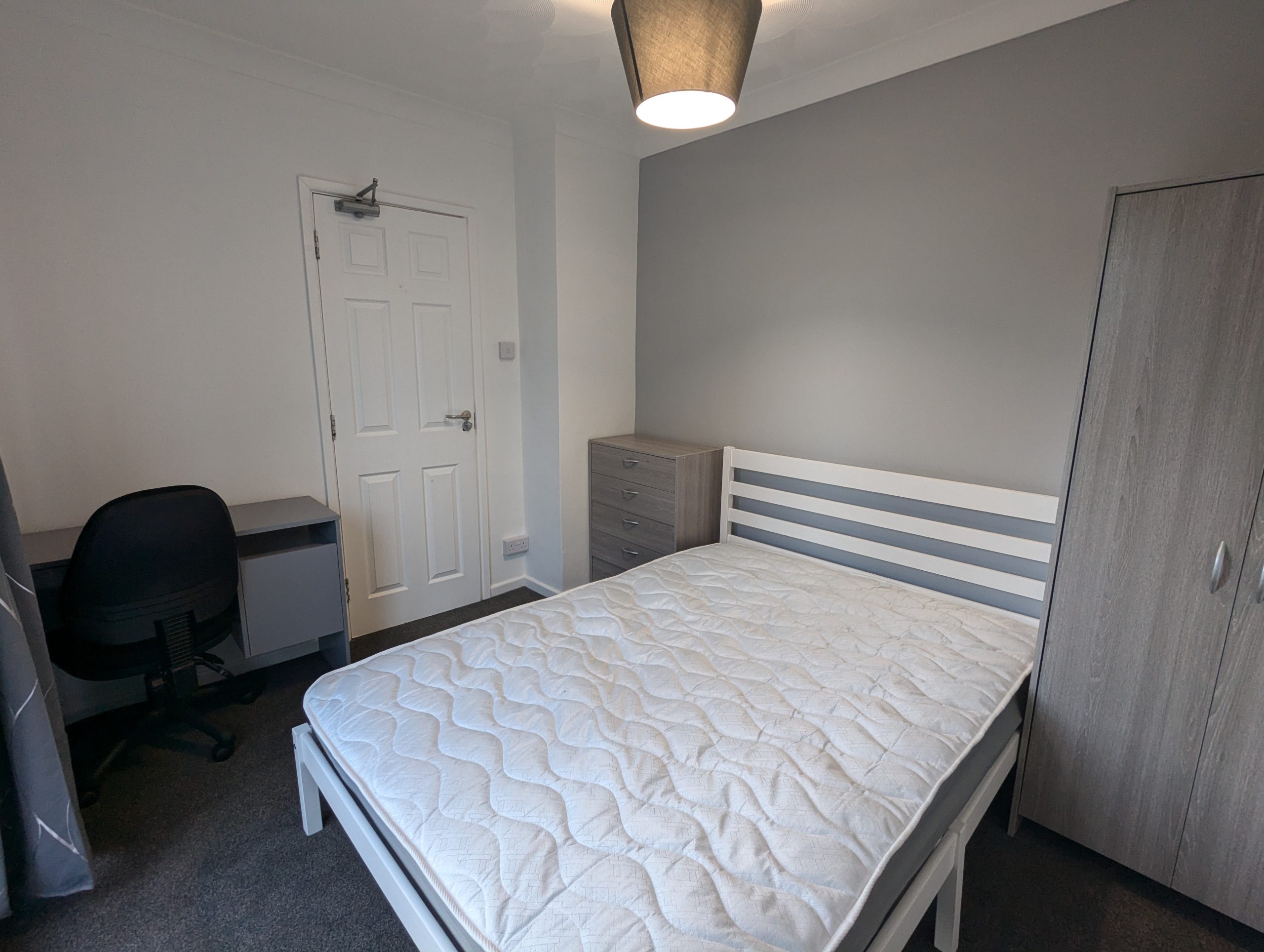 Each double room comes fully furnished including a double bed, wardrobe, chest of drawers, desk and chair. There are locks on every bedroom door.
